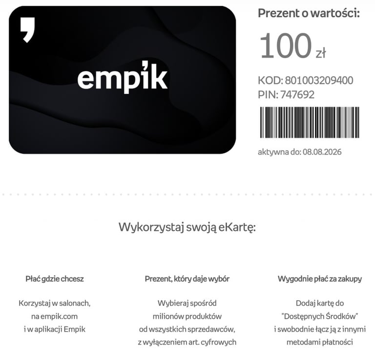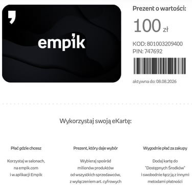You can redeem your Empik voucher code in any Empik store on online. It's valid for 12 months !